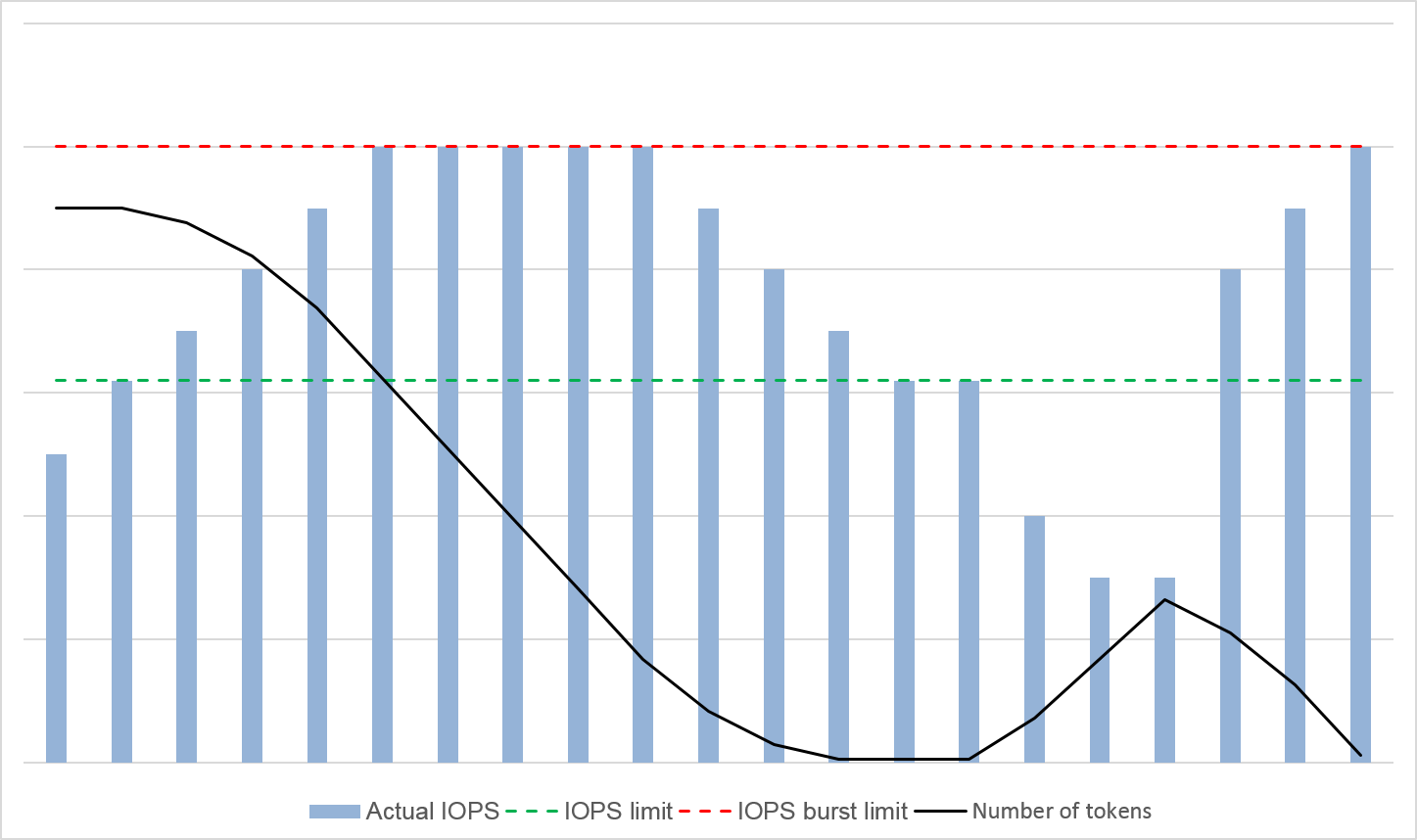 A token bucket is used to handle burst I/O operations. The number of initial tokens in the bucket is calculated as follows: