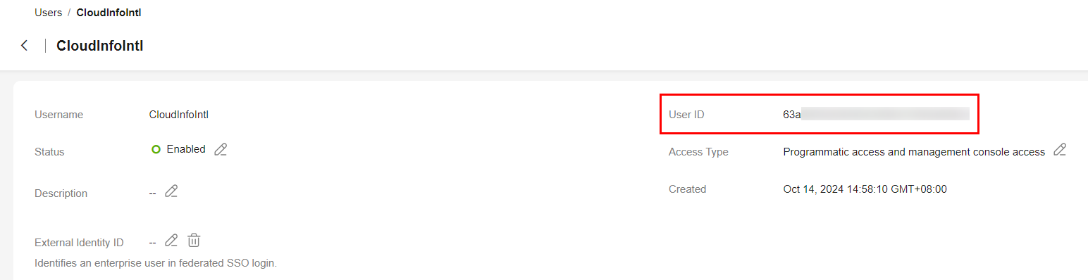 2. Click the name of a target user. On the user details page, check the user ID.