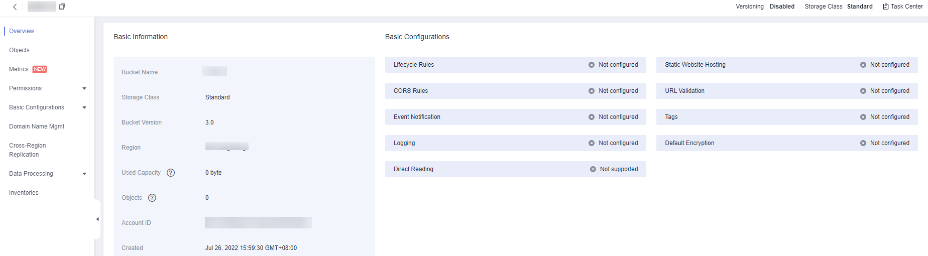 - Log in to OBS Console. In the bucket list, click the bucket you want. The bucket Overview page is displayed.