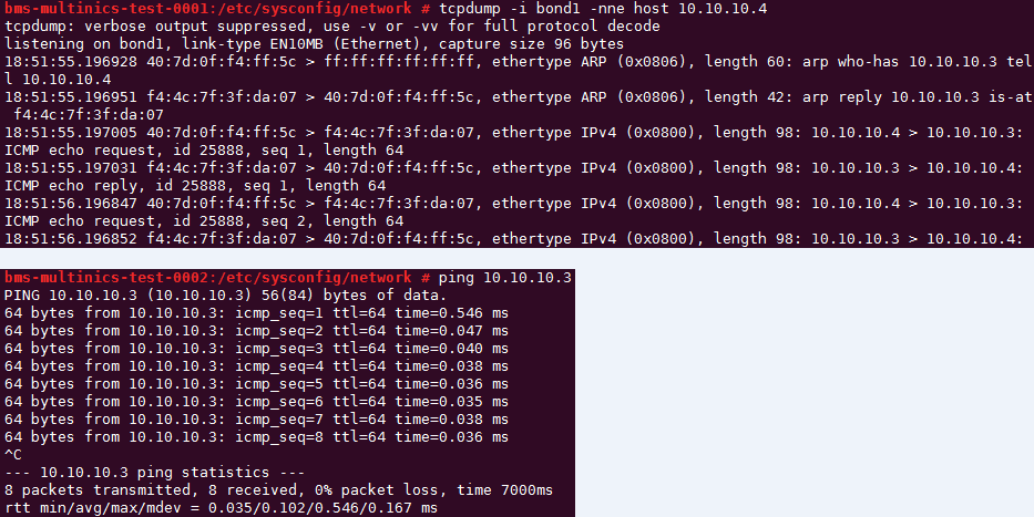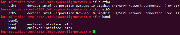 BONDING_MASTER=yes TYPE=Bond STARTMODE=auto BONDING_MODULE_OPTS="mode=1 miimon=100" NM_CONTROLLED=no BOOTPROTO=static DEVICE=bond1 USERCONTRL=no LLADDR=40:7d:0f:f4:ff:5c BONDING_SLAVE1=eth4 BONDING_SLAVE0=eth5 IPADDR=10.10.10.4 NETMASK=255.255.255.0 MTU=8888
